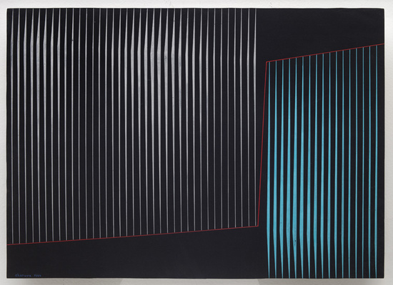 While visiting Hauser & Wirth’s “Sensitive Geometries: Brazil 1950s – 1980s,” I thought about the development of the “concrete” aesthetic, as outlined by Van Doesburg in 1930, within the particular national and historical context that was the exhibition’s focus. As it so happened, I had also recently been reading around in Brazilian “concrete poetry” from the same period (1950s through ’70s), and so I also thought about what kind of connection might exist between these divergent but seemingly related “concrete” movements in Brazilian poetry and visual arts: did they both link back to the De Stijl group, and did the artists and writers ever work together or borrow influence from each other? At the very least, I noted, there were clearly some formal affinities — between, for example, Augusto de Campos’ “sem um numero” (“without a number”) and Lothar Charoux’s Horizontals, 1960, or Composição, 1964.
